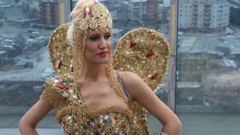 Bursa Sheraton Otel'de görücüye çıkan 1 buçuk milyon Euro değerindeki gelinlik, göz kamaştırıyor. Dünyanın en pahalı gelinliği alıcısını bekliyor. İHA İstanbul’da Gullady Moda Evi tarafından iki buçuk ay süren çalışmayla hazırlanan 55 kilo ağırlığındaki 'Altın Melek' adlı gelinlik, 900 adet altın, zümrüt, yakut ve safir taşları ile Hint kumaşından yapıldı.