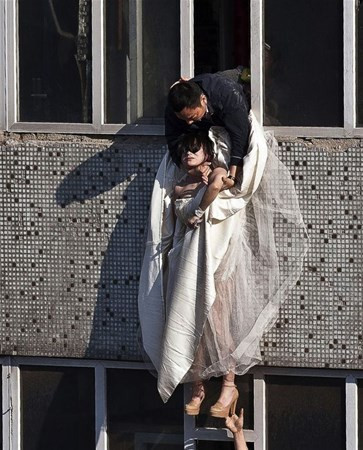 Galerinin tamamı için tıklayınızDünya bu fotoğrafları konuşuyor. Çin'den gelen görüntüler kan donduran cinsten iddialara göre Çin'de sevgilisi evlilik öncesi terk eden genç kadının bileklerini keserek bir binanın 7.katından atlayarak intihar etmek istediği şeklinde paylaşılıyor. Bir adam kızı yakalıyor ve aşağı pencerede olanlar da adama yardım ederek kadını kurtarmaya çalışıyorlar. Peki mizansen mi gerçek mi?