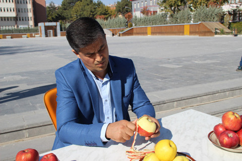 Elmadan 5,1 metre uzunluğunda kabuk soydu Guniess için sponsor bekliyor!