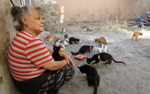 Emekli maaşıyla hasta oğlu ve 100 kediye bakıyor