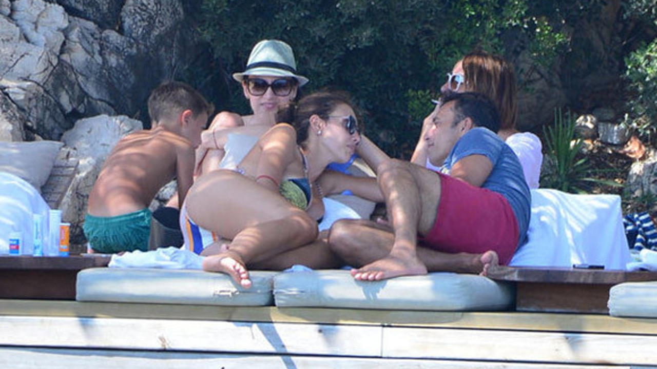 Sandal Ailesi'nin tatili tam gaz devam ediyor! Önceki gün Türkbükü'nde beach'te birlikte güneşlenen Mustafa-Emina Sandal çifti birbirlerini öpücüklere boğdu. İkilinin sohbeti çocukları Yaman'la Yavuz'un uyku saati nedeniyle bölündü. Çocukları alıp botla açıkta demirli tekneye götüren Emina Sandal yarım saat sonra eşinin yanına döndü.