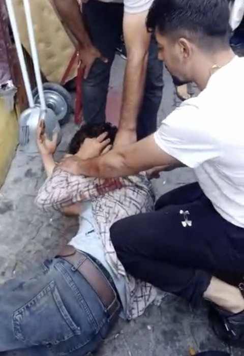 Eminönü'nde tacizciye dayak! Kadınlar tacizciyi yerde tekmeledi 'Burada inşaat mı var lan!'