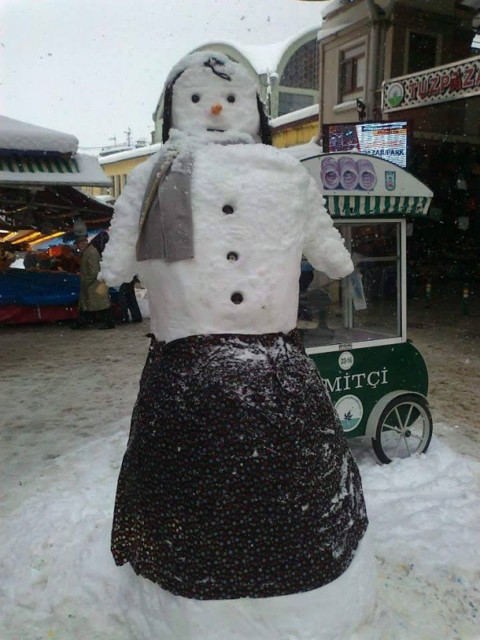 Kar yağışı Türkiye'yi etkisi altına alırken yaratıcı kardan adamlar yapıldı. Ortaya renkli görüntüler çıktı.