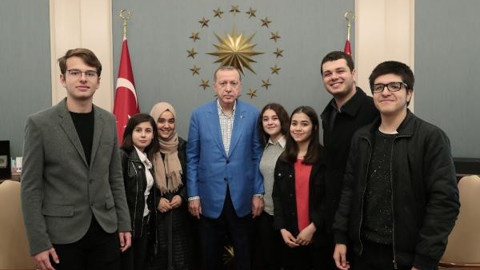 ANKARA'da, 15 Temmuz Şehitler Anıtı'nı ziyaret ederken Cumhurbaşkanı Recep Tayyip Erdoğan tarafından Cumhurbaşkanlığı Külliyesi'nde kabul edilen öğrencilerden Bilgi İlay Yıldız, "Aracı geldiği gibi hepimiz, 'Cumhurbaşkanımız' diye el salladık. Araç durdu, kapıyı açtı. Elini tuttuk, 'Efendim Adana'dan geldik, sizi aslında grup toplantısında görmek istedik' dedik. Ondan sonra 'Elin niye bu kadar soğuk?' dedi. 'Efendim sizi beklerken çok üşüdüm' dedim. Özel kalemine döndü, 'Gençleri içeri alalım, beraber çay içelim' dedi. Bizi konutunda ağırladı" diye konuştu. Adana Ticaret Odası Anadolu Lisesi öğrencileri, önceki gün, Ankara'ya gelerek 15 Temmuz Şehitler Anıtı'nı ziyaret etti. Bu sırada, yurt dışı gezisinden geldiği Esenboğa Havalimanı'nda basın toplantısı düzenleyen ve sonrasında Cumhurbaşkanlığı Külliyesi'ne geçen Cumhurbaşkanı Recep Tayyip Erdoğan, öğrencileri gördü. Makam otomobilinden inerek öğrencilerin yanına giden Cumhurbaşkanı Erdoğan, gençlerle hatıra fotoğrafı çektirdi. Cumhurbaşkanı, ardından öğrencileri Cumhurbaşkanlığı Külliyesi'ndeki konutunda ağırladı. Cumhurbaşkanı Erdoğan ile yaklaşık 40 dakika görüşen liseli öğrenciler, Tarım ve Orman Bakanı Bekir Pakdemirli ile Tarım İşletmeleri Genel Müdürlüğü'nde bir araya geldi. Burada öğrencilerle yakından ilgilenen Bakan Pakdemirli, "Biz bu ülkeyi yeni nesillere emanet edeceğiz. En kıymetli misafirim sizlersiniz. Yarınlarda sizler bu ülkeyi yönetiyor olacaksınız. O yüzden biz bugün ne yapıyorsak, aslında sizler için yapıyoruz. Cumhurbaşkanımız ile geçirdiğiniz anları, zamanları herkese anlatın. Uzun zaman geçirmişsiniz, öğrendim" dedi. Bakan Pakdemirli, daha sonra öğrencilerle tek tek tanıştı. O ANI ANLATTI Öğrencilerden 11'inci sınıf öğrencisi Bilgi İlay Yıldız ise Cumhurbaşkanı Erdoğan ile karşılaştıkları o anları anlattı. Ankara'ya geldiklerinde en büyük isteklerinin Cumhurbaşkanı Erdoğan'ı görmek olduğunu söyleyen Yıldız, bu kapsamda hem Cumhurbaşkanını görebilmek hem de 15 Temmuz Şehitler Anıtı'nı ziyaret etmek için arkadaşlarıyla beraber Cumhurbaşkanlığı Külliyesi'ne gittiklerini belirtti. Yıldız, şunları söyledi: "Cumhurbaşkanımız oradan geçiyordu, korumalar vardı. Biz o zaman, 'Cumhurbaşkanımız geldiğinde hepimiz sesleniyoruz' dedik, belki camını indirir diye gittik anıtın önüne. Baktık o anda konvoy başladı. Cumhurbaşkanımızın aracı geldiği gibi hepimiz, 'Cumhurbaşkanımız', 'Reis' diye el salladık. Baktık araç durdu. O anda bizim elimiz ayağımız titriyor, çok heyecanlıyız. İlk defa karşı karşıya geleceğiz. Koruması indi, 'Gelin gençler' dedi. 'Cumhurbaşkanımız aracının camını indirir, oradan konuşur' dedik. Baktık kapıyı açtı. Elini tuttuk, 'Efendim Adana'dan geldik, sizi aslında grup toplantısında görmek istedik' dedik. 'Durun sakin olun, Adana'dan mı geldiniz?' dedi. 'Evet efendim' dedik. Ondan sonra 'Elin niye bu kadar soğuk?' dedi. 'Efendim sizi beklerken çok üşüdüm' dedim. Özel kalemine döndü, 'Gençleri içeri alalım, beraber çay içelim' dedi. Ondan sonra bizi konutunda ağırladı. 40 dakika görüşmüşüz, sanki 10 saniye gibiydi. Mükemmel oldu."