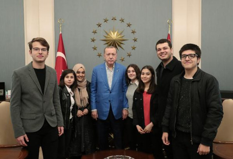 ANKARA'da, 15 Temmuz Şehitler Anıtı'nı ziyaret ederken Cumhurbaşkanı Recep Tayyip Erdoğan tarafından Cumhurbaşkanlığı Külliyesi'nde kabul edilen öğrencilerden Bilgi İlay Yıldız, "Aracı geldiği gibi hepimiz, 'Cumhurbaşkanımız' diye el salladık. Araç durdu, kapıyı açtı. Elini tuttuk, 'Efendim Adana'dan geldik, sizi aslında grup toplantısında görmek istedik' dedik. Ondan sonra 'Elin niye bu kadar soğuk?' dedi. 'Efendim sizi beklerken çok üşüdüm' dedim. Özel kalemine döndü, 'Gençleri içeri alalım, beraber çay içelim' dedi. Bizi konutunda ağırladı" diye konuştu. Adana Ticaret Odası Anadolu Lisesi öğrencileri, önceki gün, Ankara'ya gelerek 15 Temmuz Şehitler Anıtı'nı ziyaret etti. Bu sırada, yurt dışı gezisinden geldiği Esenboğa Havalimanı'nda basın toplantısı düzenleyen ve sonrasında Cumhurbaşkanlığı Külliyesi'ne geçen Cumhurbaşkanı Recep Tayyip Erdoğan, öğrencileri gördü. Makam otomobilinden inerek öğrencilerin yanına giden Cumhurbaşkanı Erdoğan, gençlerle hatıra fotoğrafı çektirdi. Cumhurbaşkanı, ardından öğrencileri Cumhurbaşkanlığı Külliyesi'ndeki konutunda ağırladı. Cumhurbaşkanı Erdoğan ile yaklaşık 40 dakika görüşen liseli öğrenciler, Tarım ve Orman Bakanı Bekir Pakdemirli ile Tarım İşletmeleri Genel Müdürlüğü'nde bir araya geldi. Burada öğrencilerle yakından ilgilenen Bakan Pakdemirli, "Biz bu ülkeyi yeni nesillere emanet edeceğiz. En kıymetli misafirim sizlersiniz. Yarınlarda sizler bu ülkeyi yönetiyor olacaksınız. O yüzden biz bugün ne yapıyorsak, aslında sizler için yapıyoruz. Cumhurbaşkanımız ile geçirdiğiniz anları, zamanları herkese anlatın. Uzun zaman geçirmişsiniz, öğrendim" dedi. Bakan Pakdemirli, daha sonra öğrencilerle tek tek tanıştı. O ANI ANLATTI Öğrencilerden 11'inci sınıf öğrencisi Bilgi İlay Yıldız ise Cumhurbaşkanı Erdoğan ile karşılaştıkları o anları anlattı. Ankara'ya geldiklerinde en büyük isteklerinin Cumhurbaşkanı Erdoğan'ı görmek olduğunu söyleyen Yıldız, bu kapsamda hem Cumhurbaşkanını görebilmek hem de 15 Temmuz Şehitler Anıtı'nı ziyaret etmek için arkadaşlarıyla beraber Cumhurbaşkanlığı Külliyesi'ne gittiklerini belirtti. Yıldız, şunları söyledi: "Cumhurbaşkanımız oradan geçiyordu, korumalar vardı. Biz o zaman, 'Cumhurbaşkanımız geldiğinde hepimiz sesleniyoruz' dedik, belki camını indirir diye gittik anıtın önüne. Baktık o anda konvoy başladı. Cumhurbaşkanımızın aracı geldiği gibi hepimiz, 'Cumhurbaşkanımız', 'Reis' diye el salladık. Baktık araç durdu. O anda bizim elimiz ayağımız titriyor, çok heyecanlıyız. İlk defa karşı karşıya geleceğiz. Koruması indi, 'Gelin gençler' dedi. 'Cumhurbaşkanımız aracının camını indirir, oradan konuşur' dedik. Baktık kapıyı açtı. Elini tuttuk, 'Efendim Adana'dan geldik, sizi aslında grup toplantısında görmek istedik' dedik. 'Durun sakin olun, Adana'dan mı geldiniz?' dedi. 'Evet efendim' dedik. Ondan sonra 'Elin niye bu kadar soğuk?' dedi. 'Efendim sizi beklerken çok üşüdüm' dedim. Özel kalemine döndü, 'Gençleri içeri alalım, beraber çay içelim' dedi. Ondan sonra bizi konutunda ağırladı. 40 dakika görüşmüşüz, sanki 10 saniye gibiydi. Mükemmel oldu."