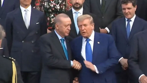 Yemek öncesi çekilen NATO aile fotoğrafında Erdoğan ile Trump yan yana gelirken, iki liderin samimi pozları da dikkat çekti.