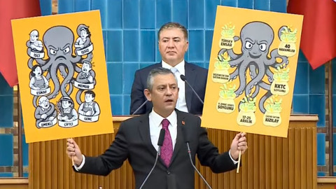 Abone olCHP Genel Başkanı Özgür Özel, Cumhurbaşkanı Erdoğan'ın "İstanbul'dan Türkiye'ye ve yurt dışına uzanan ahtapotun kolları bir bir deşifre oluyor" sözlerine yanıt verdi. Partisinin grup toplantısında ahtapot resimlerinin olduğu iki dövizi gösteren Özel, "Aranan ahtapot bulundu! Reis'in tarif ettiği ahtapot Özgür Özel'in ellerinde! 17-25 de burada." dedi.
