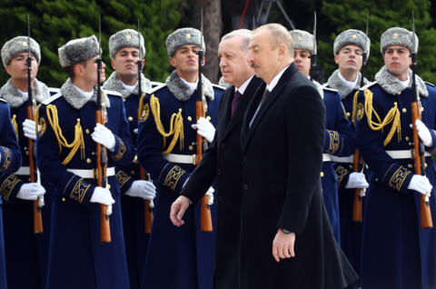Türkiye-Azerbaycan Yüksek Düzeyli Stratejik İşbirliği Konseyi'nin 8'inci Toplantısı'na katılmak üzere Bakü'ye gelen Türkiye Cumhurbaşkanı Recep Tayyip Erdoğan, Zagulba Sarayı'na gelişinde Azerbaycan Cumhurbaşkanı İlham Aliyev tarafından resmi törenle karşılandı.Törenin ardından Cumhurbaşkanı Erdoğan ve mevkidaşı Aliyev baş başa görüştü. Erdoğan'ın yanında Aliyev'e verilmek üzere bir hediyesi vardı. İşte resmi karşılama ve görüşmeden dikkat çeken kareler;Aliyev'i mest etti Erdoğan Aliyev'e Türkiye'den getirdiği tesbihi hediye etti. Aliyev'in Erdoğan'ın tesbih hediyesi karşısında çok mutlu olduğu gözlerinden okundu.