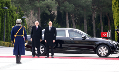 Türkiye-Azerbaycan Yüksek Düzeyli Stratejik İşbirliği Konseyi'nin 8'inci Toplantısı'na katılmak üzere Bakü'ye gelen Türkiye Cumhurbaşkanı Recep Tayyip Erdoğan, Zagulba Sarayı'na gelişinde Azerbaycan Cumhurbaşkanı İlham Aliyev tarafından resmi törenle karşılandı.Törenin ardından Cumhurbaşkanı Erdoğan ve mevkidaşı Aliyev baş başa görüştü. Erdoğan'ın yanında Aliyev'e verilmek üzere bir hediyesi vardı. İşte resmi karşılama ve görüşmeden dikkat çeken kareler;Aliyev'i mest etti Erdoğan Aliyev'e Türkiye'den getirdiği tesbihi hediye etti. Aliyev'in Erdoğan'ın tesbih hediyesi karşısında çok mutlu olduğu gözlerinden okundu.