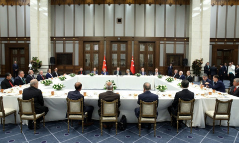 Galerinin tamamı için tıklayınızCumhurbaşkanlığı Külliyesi'nde basına kapalı gerçekleşen iftara, Başbakan Binali Yıldırım, Dünya Ehl-i Beyt Vakfı Başkanı Fermani Altun ve Prof. Dr. Hüseyin Hatemi de katıldı.