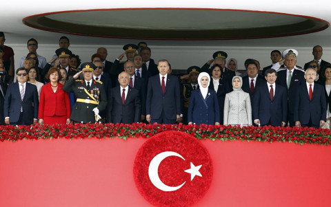 Daha sonra AKM'deki geçit törenine geçildi. Protokol tribününde