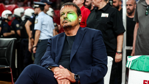 Ergin Ataman'a lazer tuttular Yunan bayrakları açtılar