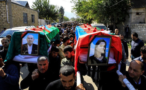 Galerinin tamamı için tıklayınızAzerbaycan, Ermeni saldırıları sonucu şehit olan vatandaşlarını son yolculuklarına uğurlarken, Reuters muhabiri Ümit Öztürk saldırıdan geriye kalan yıkımı görüntüledi.