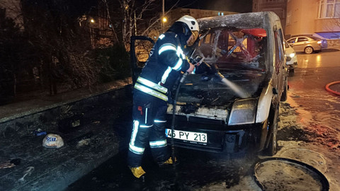halindeki 45 PY 213 plakalı hafif ticari araçta yangın çıktı.