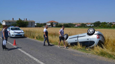 Buğday tarlasına devrilen otomobilde sürücü Özkan’ın yanı sıra