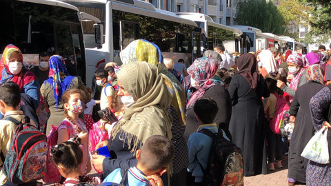 Yüz yüze eğitimin başlaması ardından özellikle nüfus bakımından kalabalık ilçelerdeki ikili eğitim görülen okulların önü, öğle saatlerinde veli ve öğrencilerle dolup taşıyor. Sabah eğitiminin sona ermesi ile birlikte çocuklarını okuldan almak için gelen ve yaklaşık yarım saat sonra başlayacak öğleden sonraki eğitim için çocuklarını getiren veliler, nedeniyle büyük kalabalık oluşuyor.Okullarda alınan bütün önlemlere rağmen eğitim kurumlarının hemen önünde sosyal mesafenin hiçe sayıldığı görüntüler dikkat çekiyor.Esenyurt'taki Örnek Mahallesi'nde bulunan 4 bini aşkın öğrencinin 43 sınıfta eğitim gördüğü Örnek İlkokulu'nun çevresinde saat 12.00'yi gösterdiğinde öğrenci ve veliler servislerin bulunduğu alanda büyük kalabalık oluşturuyor.Kimse anonslara uymuyor: Öğrenci ve veliler servislerin gelmesini ve binmek için beklerken anneleri veya yakınları da yanlarından ayrılmayınca kalabalık her geçen dakika daha da artıyor. Okul yöneticileri velilerin sosyal mesafesiz bekleyişleri ve çocuklarını almaya gelmesinin endişe verici olduğunu göz önüne alarak sabah, öğle ve akşam saatlerinde hoparlör sistemi ile defalarca uyarı yapmasına rağmen uyarılara kimsenin uymadığı görüldü. Yine Esenyurt'taki Pınar Mahallesi'ndeki 32 sınıfta 3 bini aşkın öğrencisi bulunan İbrahim Özaydın İlkokulu'nun da çevresi yine öğle saatlerinde veli ve öğrencilerle dolup-taşarken sosyal mesafe kuralının yine hiçe sayıldığı görüldü. Buradaki okul yöneticilerinin de uyarılarının pek dikkate alınmadığı görüldü.