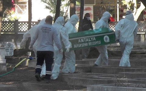 Galerinin tamamı için tıklayınızToprağa verilmek üzere Tekirova’daki Merkez Camisine getirilen Ali İhsan Ersan Öztürk’ün cenaze namazı, Mustafa Kemal Atatürk Caddesi üzerinde sosyal mesafe kuralları uygulanarak kılındı. Cenaze namazını müteakip helallik alınmasından ve duaların ardından, Öztürk’ün tabutu özel giysili defin görevlileri tarafından taşınarak Tekirova Şehitlik Mezarlığı’nda toprağa verildi.