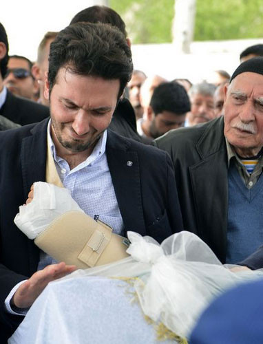 Galerinin tamamı için tıklayınızSaldırıda yaralanan kolu askıda bulunan Adnan Yıldız, caminin girişinde bir sandalyede, yakınlarının ısrarı üzerine oturdu ve bir kez daha taziyeleri kabul etti.