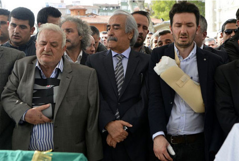 Galerinin tamamı için tıklayınızYıldız cenaze törenine katılanlara zaman zaman sarılarak, "yandım ben" diyerek gözyaşı döktü. Yıldız'ın saldırıda yaralanan oğlu Kamil Yıldız ile ağabeyi Kemal de musalla taşının arkasında taziyeleri kabul etti.