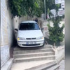 Eyüpsultan'da gideceği yolu karıştıran sürücünün otomobiliyle merdivenlerden inmeye çalışması cep telefonuyla kaydedildi.