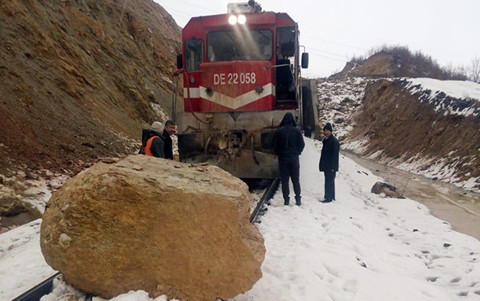 Faciadan dönüldü: Dağdan kopan dev kaya trene çarptı!