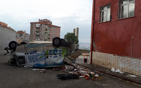 Galerinin tamamı için tıklayınızSürücüsünün direksiyon hakimiyetini kaybettiği minibüs daha sonra yolun altında bulunun İzciler Ortaokulu'nun 2'nci katına çarparak bahçeye düştü.