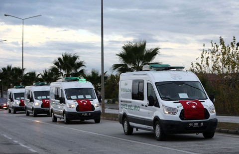 Cenazeler, Asri Mezarlık morgundan alınarak üzerilerinde hayatını kaybeden isimlerinin yazılı olduğu kağıtlar ve Türk bayrakları asılan cenaze araçlarına konuldu.