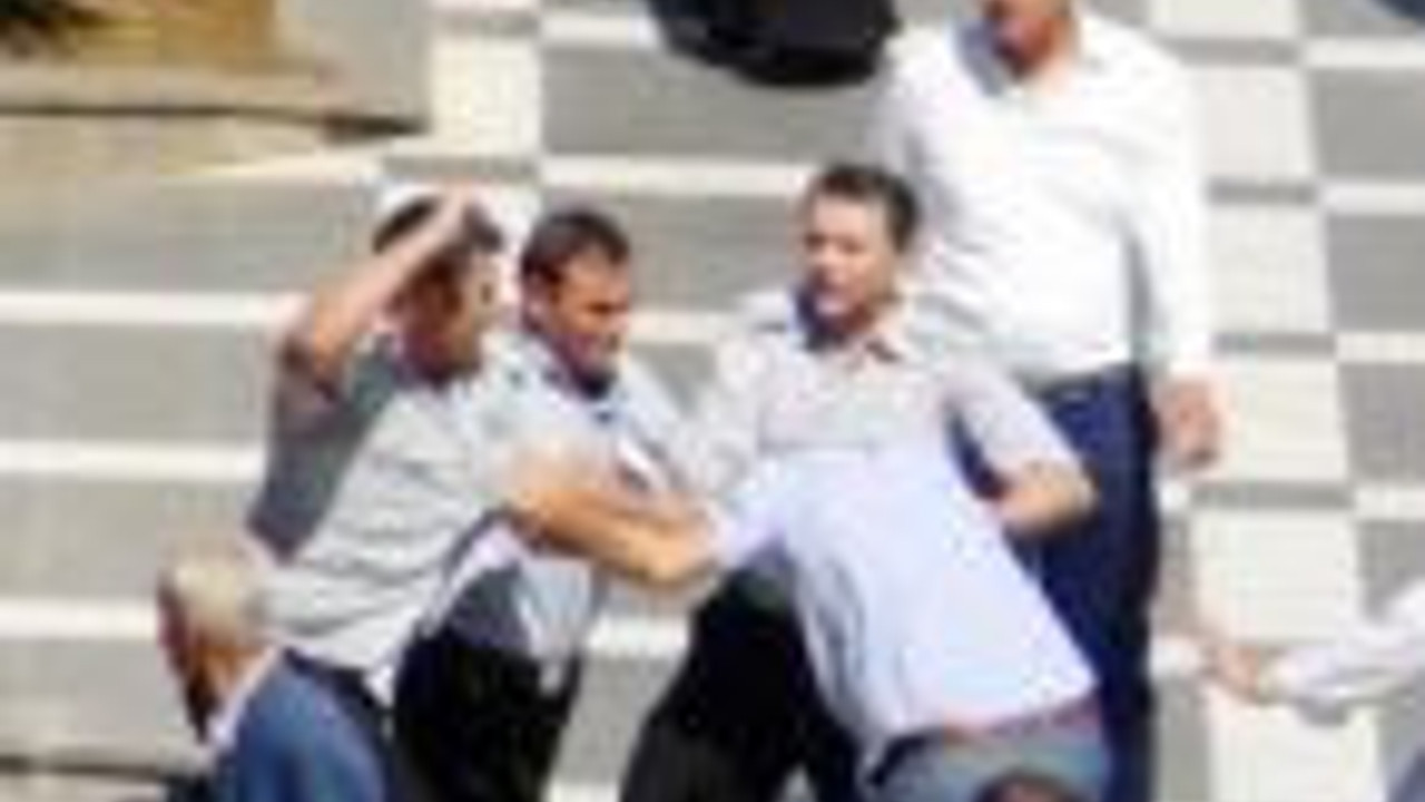Şanlıurfa'da, 13 bin lira imar cezasını ödemediği için sahip olduğu aracı haczedilen 42 yaşındaki Necmi Urmak, belediye önünde Belediye Başkanı Ahmet Eşref Fakıbaba'nın aracının önünü kesmeye kalkışınca özel güvenlik görevlileri müdahale etti. Arbedede, özel güvenlik görevlilerinin yumruklarına hedef olan Urmak yaralandı. Olay, öğle saatlerinde Atatürk Bulvarı üzerinde bulunan Şanlıurfa Belediye binası protokol girişinde meydana geldi. Kentte esnaflık yapan Necmi Urmak'a, yaptırdığı bir inşaatta imara aykırı davrandığı gerekçesiyle para cezası kesildi ve ödeme yapmayınca da sahibi olduğu araç haczedildi ve otoparka çekildi. Bunun üzerine sinirlenen Urmak, konuyu görüşmek için Belediye Başkanı AK Partili Ahmet Eşref Fakıbaba'nın yanına gitti. Urmak, yoğun programından dolayı görüşemediği Fakıbaba'nın çıkışını bekledi. Belediyeden çıkan Fakıbaba'nın bindiği makam aracının önünü keserek görüşmek isteyen Urmak'a özel güvenlik görevlileri müdahale etti.Fakıbaba'nın içinde bulunduğu araç belediyeden ayrılırken, Urmak ile kendisini engelleyen güvenlik görevlileri arasında tartışma çıktı. HASTANELİK OLDU Tartışmanın, kısa sürede büyüyerek kagaya dönüşmesi üzerine Urmak, 4 özel güvenlik görevlisinin yumruklarına hedef oldu. Yüzüne aldığı yumruklar ile kanlar içerisinde kalan Urmak, olayı gören vatandaşlar tarafından kurtarıldı. Belediye Başkanı Ahmet Eşref Fakıbaba'nın yorum yapmadığı olayla ilgili soruşturma sürdürülüyor.