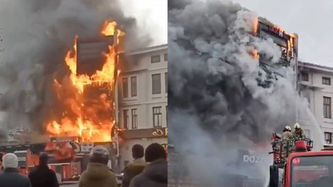 Eminönü'nde restoranın bulunduğu 4 katlı binada, henüz belirlenemeyen nedenle yangın çıktı. İhbar üzerine olay yerine çok sayıda itfaiye, polis ve sağlık ekibi sevk edildi.Kısa sürede büyüyen alevler, binayı sarıp ve yan taraftaki yapılara da sıçradı.Yangın itfaiye ekiplerince kontrol altına alındı. İşte olay yerinden görüntüler...
