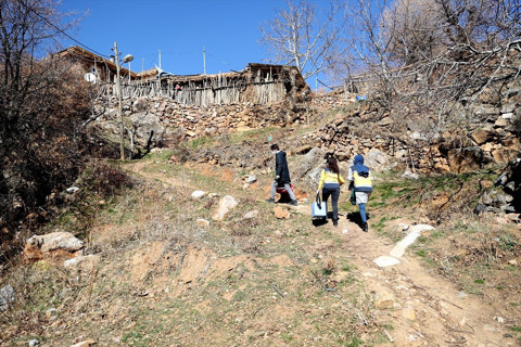 Fedakarlık dağ boyu! Sağlık ekibi 1950 rakımlı tepeye tırmandı 86 yaşında ilk kez aşı oldu