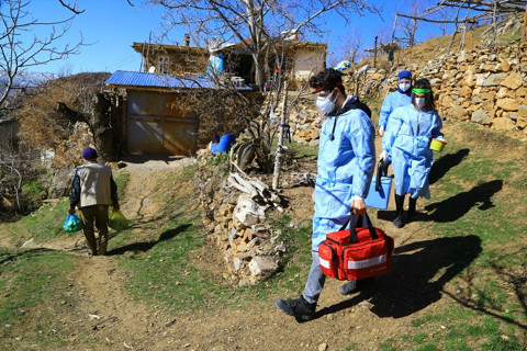 Galerinin tamamı için tıklayınızEskiden bir "dağ köyü" olarak bilinen yüksek rakımlı kırsal mahalleye ulaşmaya çalışan sağlık ekibi, aracın gidemediği 3 kilometrelik patika yolu ise yürüyerek çıktı.