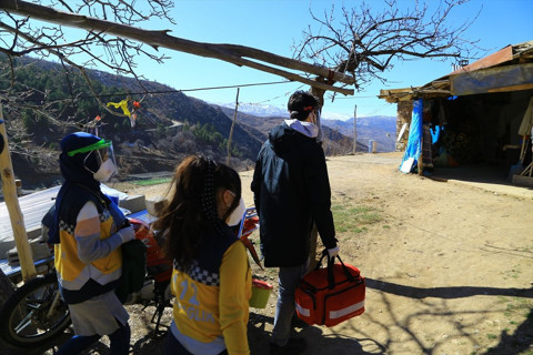 Fedakarlık dağ boyu! Sağlık ekibi 1950 rakımlı tepeye tırmandı 86 yaşında ilk kez aşı oldu