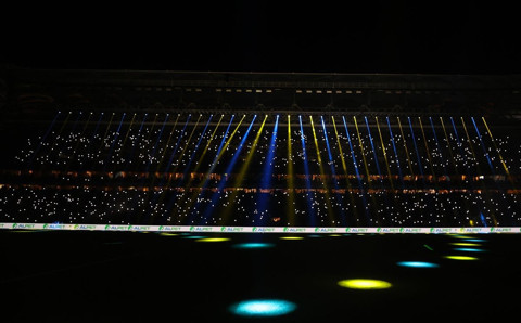 Galerinin tamamı için tıklayınızOyuncuların sahaya girişi esnasında sarı-lacivert dumanlarla ufak bir gösteri yapan takım, maç kadrolarını da ışık şovuyla duyurdu.