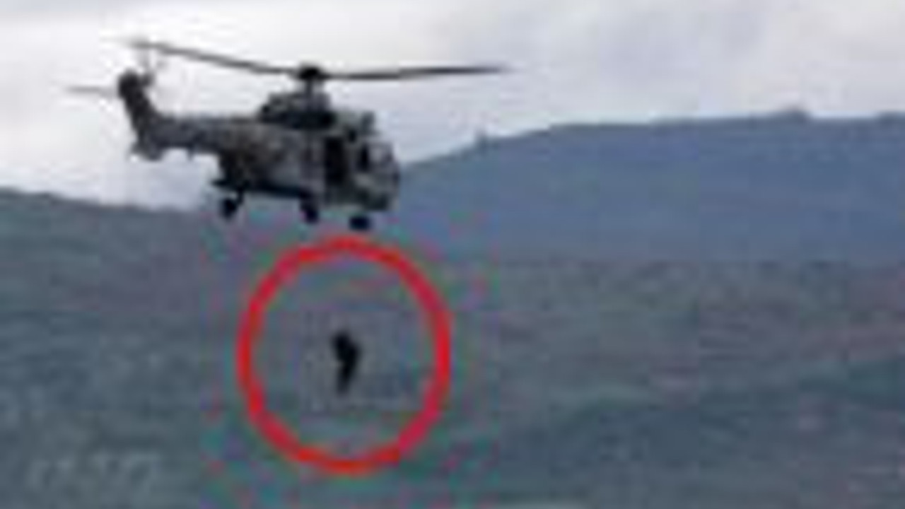 Mahsur kalan İsmail Köklü, helikopterden sarkıtılan halatla çekilerek kurtarıldı.
