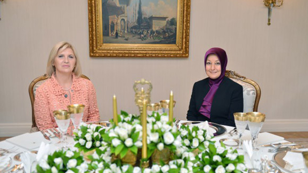 Cumhurbaşkanı Gül'ün eşi Hayrünnisa Gül, Çankaya Köşkü'nde Sırbistan Cumhurbaşkanı Tomislav Nikoliç'in eşi Dragica Nikoliç'i ağırladı. Köşk mutfağında incelemelerde bulunan Gül ve Nikoliç, daha sonra birlikte hamur açıp mantı yaptı. Sırbistan Cumhurbaşkanının eşi Dragica Nikoliç´i Şeref Kapısı´nda karşılayan Hayrünnisa Gül, daha sonra konuğunun talebi üzerine Çankaya Köşkü´nün yenilenen bölümlerini gezdirdi. Bayan Nikoliç onuruna Osmanlı Salonu´nda öğle yemeği veren Bayan Gül, yapılan tablo, varak, seramik, cam ve kağıt restorasyonları hakkında da bilgi verdi. Mayıs ayında Çankaya Köşkü´nde düzenlenen Türkiye-Bosna Hersek-Sırbistan Devlet Başkanları Üçlü Zirvesi´ne katılan Sırbistan Cumhurbaşkanı Tomislav Nikoliç´in kendisine yenilenen Çankaya Köşkü salonlarından ve çalışmalardan övgüyle söz etmesi üzerine Çankaya Köşkü´nü ziyaret etmek istediğini söyleyen Nikoliç, bu tür çalışmalarla yakından ilgilendiğini belirtti. Sırbistan´da kendi adına kurulan bir vakfın insani konularda hizmet ettiğini ve halkının refahı, hayat şartlarının iyileştirilmesi için çalışmalar yaptığını ifade eden Nikoliç, vakfın ayrıca sanat çalışmalarına, manastır, müze ve tiyatrolara da destek sağladığını kaydetti. Çankaya Köşkü´nde sergilenen ünlü ressamların tabloları ve Osmanlı dönemine ait eşyalarla yakından ilgilenen Nikoliç, özel olarak tasarlanan ve Mustafa Kemal Atatürk´ün eşyalarının sergilendiği bölümü de dikkatle inceledi. Gül ve Nikoliç, resepsiyon salonlarını da gezdikten sonra Çankaya Köşkü´nün mutfak bölümünde incelemelerde bulundu. 'TÜRK MUTFAĞINA HAYRANIM' Köşk´ün bahçesinde ve serada yetiştirilen organik sebze ve meyvelerin tadına bakan Nikoliç, aşçıların katmer yapımını izledi. Gül ve Nikoliç, daha sonra birlikte hamur açıp mantı yaptı. Fırsat buldukça ailesi ile birlikte Türkiye´yi ziyaret ettiklerini belirten Nikoliç, Türk mutfağına hayran olduğunu da dile getirdi. Gül, hatıra fotoğrafı çekiminin ardından Nikoliç´i Şelale Kapı´dan uğurladı. Çankaya Köşk´ünde gerçekleşen görüşme yaklaşık 5 saat sürdü.