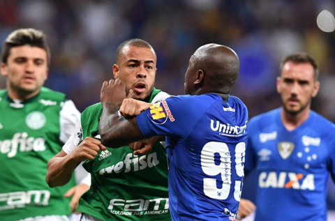 Brezilya Kupası yarı final rövanş maçında Cruzeiro, deplasmanda 1-0 kazandığı maçın rövanşında Felipe Melo'nun formasını giydiği Palmeiras'la sahasında 1-1 berabere kalarak adını finale yazdırdı. Karşılaşmada Palmeiras'ın tek golünü Felipe Melo kaydederken, maçın bitiş düdüğüyle birlikte Cruzeiro'lu futbolcu Leo, tur sevincini Felipe Melo'ya sataşarak kutlamak isteyince saha bir anda karıştı. SAHA KARIŞTI YUMRUKLAR KONUŞTU: İki takım futbolcuları arasında arbede yaşanırken, Cruzeiro'lu futbolcu Sasha, Palmeiras'lı Mayke'ye yumruk attı. Bu hareketin ardından sahadaki gerilim tavan yaparken, güvenlik görevlileri araya girmek zorunda kaldı. Karşılaşmanın hakemi olaylar sonrası iki futbolcuya da kırmızı kart gösterdi. ''YAPTIĞI HAREKET KORKÇA'': Maçın ardından açıklamalarda bulunan Felipe Melo, takım arkadaşı Mayke'ye yumruk atan Sasha'yla ilgili konuşurken, ''Yaptığı hareket korkakça. Hiçbir şey yapmadan duran bir adama koşup yumruk atmak korkaklıktan başka bir şey değil'' ifadelerini kullandı. Gerilimin sona ermesinin ardından Cruzeiro'lu futbolcular finale çıkmanın sevincini taraftarlarıyla paylaştı. Cruzeiro'lu futbolcu Thiago Neves'ten de Palmeiras taraftarlarını kızdıracak bir açıklama geldi: Sao Paulo'da yaşayan insanlar çok konuşuyor. Cruzeiro 5 şampiyonluk kazanmış bir takım ve buna saygı duymak zorundalar.