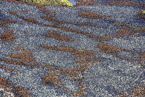 Fotoğraf mı yoksa resim mi? Resim değil, fotoğraf.. ama ne? Penguenler! Hem de on binlerce! Kral Penguenler toplanmış Kahverengi olanlar, bebek kral penguenler Bu şekilde toplanıp çocuklarına toplu bir şekilde bakıyorlar Bu arada yetişkinlerin bir kısmı da avlanmaya gidebiliyor Geride kalanlarsa çocuklara bakıyor Böyle grup halinde duruyorlar çünkü daha iyi ısınıyorlar. Aynı zamanda yetişkinlerin onları tehditlere karşı korumasına da olanak sağlıyor Havadan başka bir fotoğraf.. İlginç değil mi?