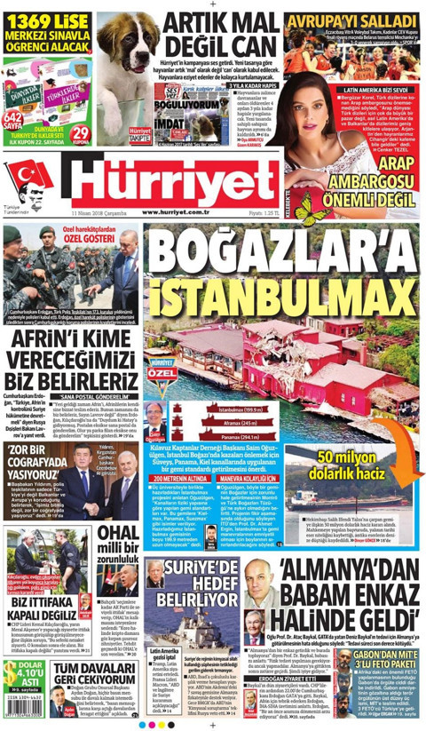 Gazete manşetleri 11 Nisan 2018 Hürriyet - Sözcü - Posta