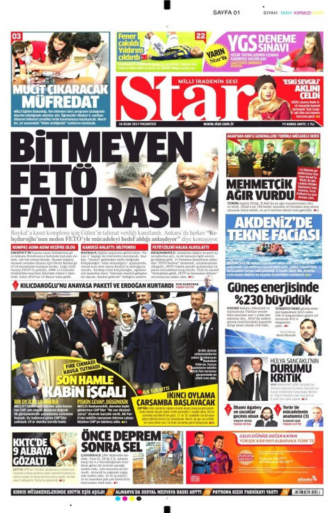 Gazete manşetleri 16 Ocak 2017 Hürriyet - Habertürk - Sözcü ne yazdı? Galerinin tamamı için tıklayınız