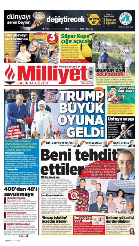 Gazete manşetleri 5 Ağustos 2018 Hürriyet - Posta - Sabah
