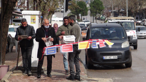 İslahiye'de yayın yapan bir yerel gazetenin sahibi de gazeteleri dağıtırken aparatı kullandı.