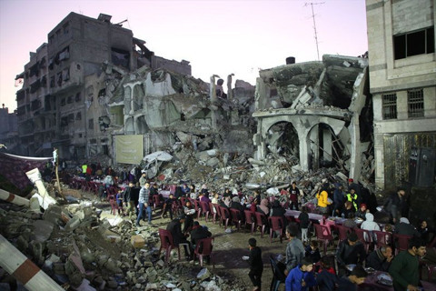 Gazze'de Filistinliler, yıkım ve enkaz arasında ilk iftarlarını açtı