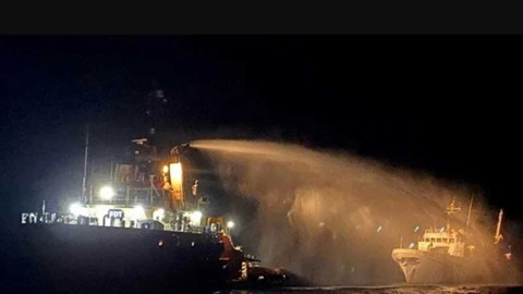Sosyal medyada paylaşılan görüntülerde gemide şiddetli bir yangın ve patlama gerçekleştiği görülüyor.
