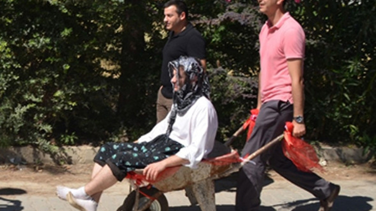 Burhan Çivi ve Pelin Güneş çifti de düğün törenleri öncesi bu geleneği bizzat yaşadı. Selçuk Mahallesi Osmangazi Caddesi'nde "gelin alma merasimi" öncesinde arkadaşları tarafından şalvar giydirilen ve başına eşarp takılan damat Burhan Çivi'ye leğende çamaşır yıkatıldı. Arkadaşları tarafından süslenen el arabasına bindirilen damat Çivi, kız evinin etrafında gezdirildi. Ardından elleri arkadan bağlandıktan sonra önüne konulan yoğurt kasesi içine atılan parayı ağzıyla arayan damada son olarak bir evin kümesinden horoz yakalatıldı. Arkadaşları, renkli görüntülerin yaşandığı "damat işkencesi" geleneğinin ardından genç çifte mutluluk diledi. Damadın arkadaşlarından Engin Semerci, AA muhabirine, bu şakaların ilçede yüzyıllardan beri uygulanan bir gelenek olduğunu söyledi. İlçede yaşayan her damat adayına düğün merasimi öncesinde bu "işkencenin" yapıldığını belirten Semerci, "Keyifli anlar yaşıyoruz. İnsanlar ömürleri boyunca bu anları unutmuyor." dedi.