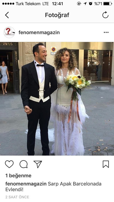 Ünlü oyuncu Sarp Apak, Bengisu Uzunöz ile evlendi. Düğün yeri masalları aratmayacak güzellikteydi ancak Bengisu'nun gelinliği rüya düğünün önüne geçti. Gelinliği görenler "Bunu neden giymiş" diye sormaktan kendini alıkoyamadı. Geçtiğimiz gün İspanya'nın Barcelona şehrinde evlenen Sarp Apak ile Bengisu Uzunöz'ün mutluluğuna dostları da ortak oldu. Onur Bulduk, Bülent Emrah Parlak, Gupse Özay, Erdem Baş, Haki Biçici, Derya Karadaş, Aylin Kontente, Öner Erkan ve daha çok sayıda ünlü isim çiftin düğününe katıldı. İşte düğünden görüntüler...