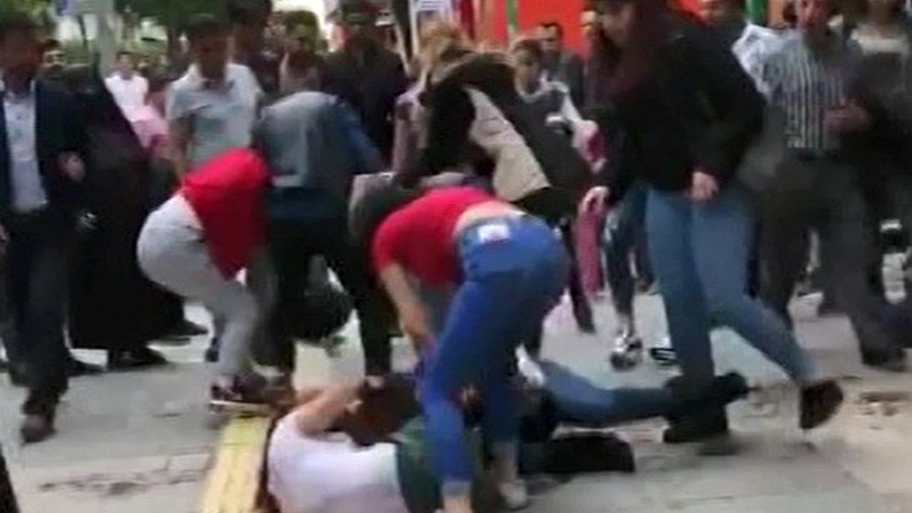 Olay, Elazığ kent merkezi Gazi Caddesi'nde meydana geldi. Alınan bilgiye göre, 4-5 kız henüz bilinmeyen bir nedenden cadde ortasında saç saça baş başa kavga etti. Çevredekilerin müdahalesiyle sona erdirilen kavga, cep telefonu kamerasına yansıdı. Merkez Gazi Caddesi'nde 4 kız henüz bilinmeyen bir nedenle tartışarak kavga etmeye başladı. Kızlardan biri, diğerinin saçını çekerek yerde sürüklerken, başka bir kız da yere düşen diğer kızla kavgasını sürdürdü. Kızların birbirlerine küfürler de ettiği kavga, çevredekilerin müdahalesiyle sonlandırıldı. Olay anı, bir kişi tarafından cep telefonuyla kaydedildi.