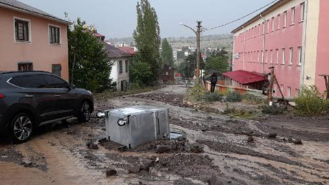 Yağmur sularına kapılan çöp konteynerleri de yollara sürüklendi. Bölgede güvenlik önlemi alan belediye ekipleri, çamur ve çakıl taşlarıyla kapanan yollarda temizleme çalışması başlattı.