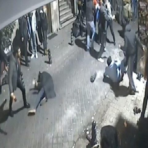 Galerinin tamamı için tıklayınızYere yatırdıkları kişilere ellerindeki bira şişeleriyle vuran saldırganları araya girenler engellemeye çalışıyor. Ancak bu kez hedef değişiyor ve araya girenler saldırıya uğruyor. Saldırıya uğrayanlar karşılık verince kavga giderek büyüyor.