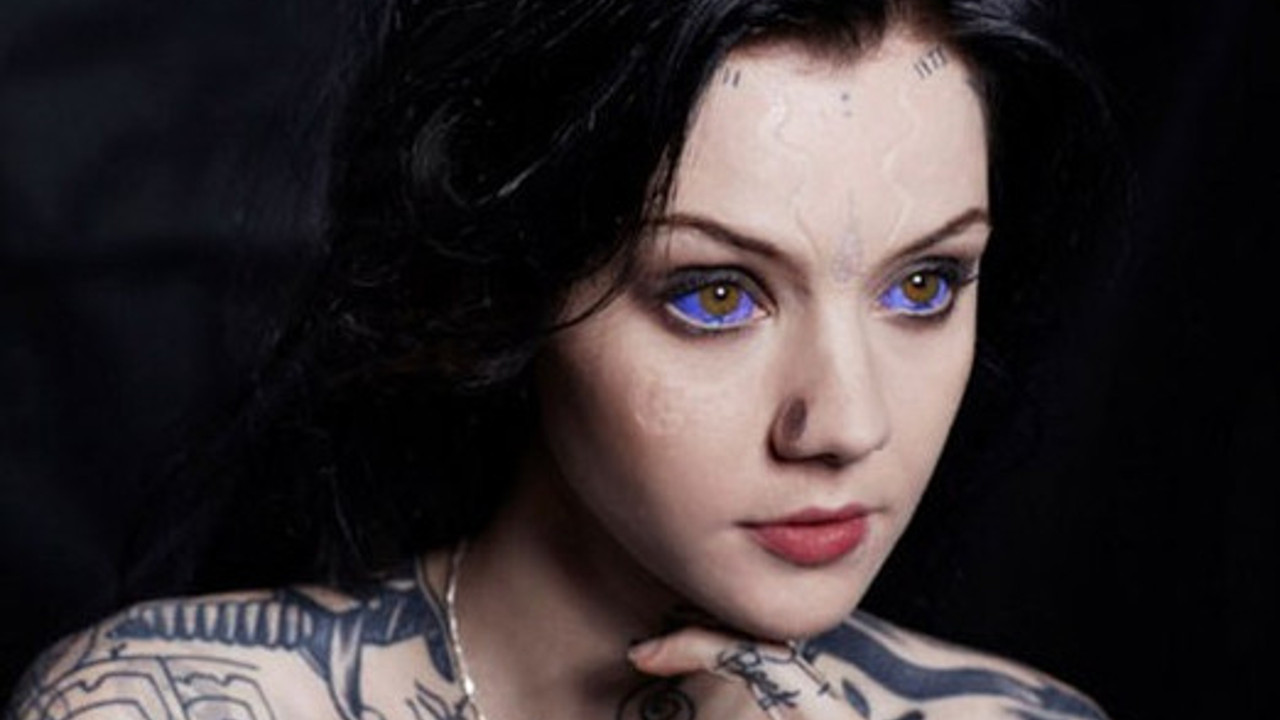 Sosyal medyada her gün bir çılgınlık görmek artık sıradan bir olay. Ama bu kadarı belki de daha önce hiç görülmedi. Grace Neutral adıyla tanınan İngiliz dövme sanatçısı, görüntüsünde inanılmaz bir değişiklik yaptı. Vücudunun pekçok yerinde dövmeler olan 25 yaşındaki Neutral, gözlerinin akına da mavi mürekkep enjekte ettirdi. Genç kız dilini de kestirerek iki parçaya ayırdı. Grace Neutral, geçen yıl Londra Moda Haftası'nda Ashley Williams'ın tasarımlarını tanıttığı defilede podyuma çıkarak adını duyurmuştu. Bu süreci de şöyle anlattı: "Dövme yaptırırken uzandığım yatağa uzandım. karın bölgemi uyuşturdum ve göbek değilimi çıkardılar. Canının acısı biter bitmez ortaya çıkan görüntüden çok memnun olduğunu da sözlerine ekledi genç kız. Görüntüsünü modifiye ettiğini söyleyen Grace Neutral, bununla da yetinmedi. Göbek deliğini de operasyonla aldırdı. İşte kendini "başka bir dünyadan gelmiş gibi" diye tanımlayan Grace Neutral'in şaşırtan görüntüsü.