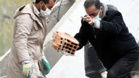 Erciş'te depremde çöken bir binanın